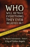 Ciudad de los Ángeles Caídos intercambia el enfoco literario entre Jace Herondale y Clary Fray quienes ahora pueden oficialmente decir que son una pareja oficial, ya que se enteraron de que no son verdaderamente hermanos. Mucho del relato se trata del entrenamiento de Clary como uno de los Cazadores de sombras y los ajustes tomados por Simon Lewis para acostumbrarse a su nueva vida como Vampiro Diurno .