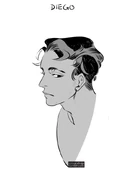Diego est considéré comme très beau. Il a les cheveux noirs et épais, les yeux noirs avec des pommettes saillantes, la peau olive, les épaules larges et il est très musclé.[2]