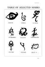 Seules les runes les plus courantes sont désignées par leurs vrais noms, tandis que les autres par leurs noms descriptifs informels. Leurs vrais noms sont dans la langue du Ciel ; ces noms étant les seuls mots de la langue que les êtres humains aient jamais été autorisés à connaître.