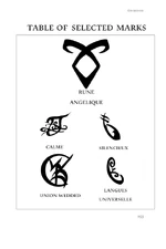 Bien qu'il existe littéralement des milliers de marques, vous trouverez ci-dessous une liste des runes mentionnées dans la Saga The Mortal Instruments ou mentionnées/illustrées dans d'autres sources officielles.
