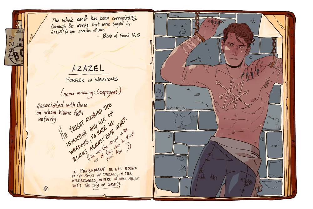 Азазель описывается как развратник людей - ангел, который научил человечество как создавать оружие, знание, ранее известное только ангелам. Это было воспринято как великое преступление, которое привело к разложению мира, началам многих войн и, в конечном счете, его падению. С тех пор он стал демоном, который, по иронии, отвечает за то, что дал человечеству знания, необходимые для борьбы с демонами.