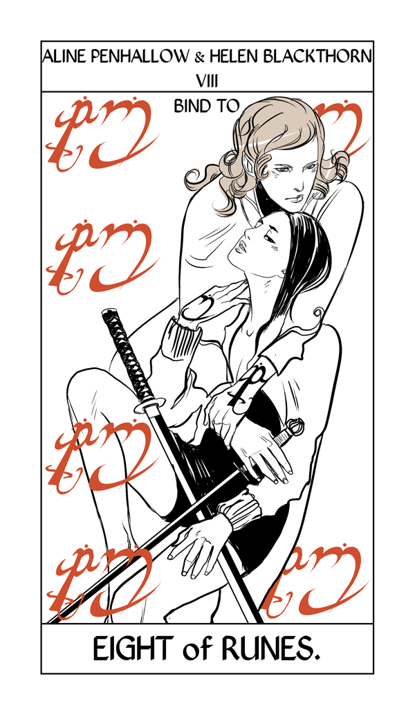 Weeks into their relationship, Aline and Helen had already exchanged family rings, which was considered a serious gesture among Shadowhunters.[4] When Helen got exiled to Wrangel Island, Aline joined her shortly after and stayed there with her.[6] The couple were wed around two years later.[8]