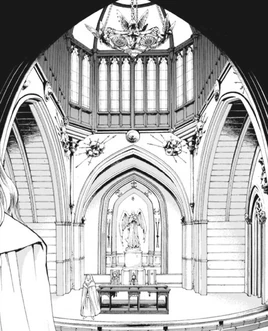 The Council Hall is a horseshoe-shaped space with rows of benches giving way to a slightly raised dais with more benches and seats. Above the dais, there is a golden clock of fine scrollwork with a Latin phrase, "ULTIMA THULE", etched around the rim. The clock rings through the Gard sounding like the tolling of a huge bell. Behind the dais, there is a wall of windows giving out a view of Alicante below.[1] The chamber itself is big enough to accommodate all Clave members.