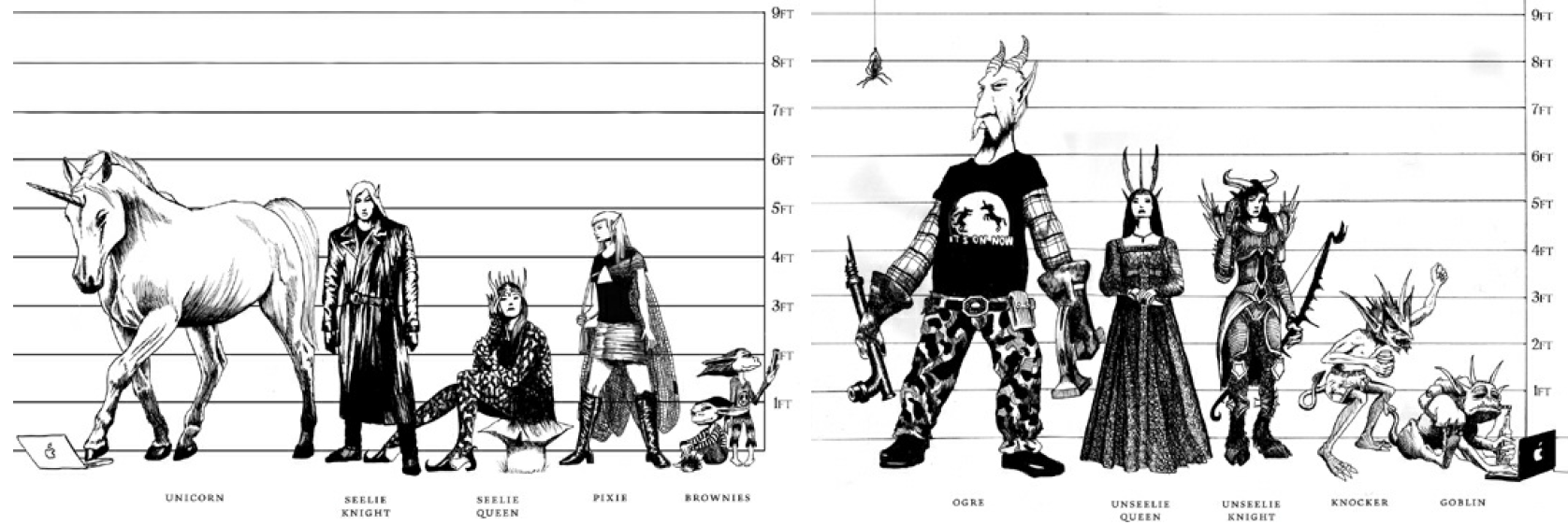 An illustration of faeries and their varied sizes in the Shadowhunter's Codex.