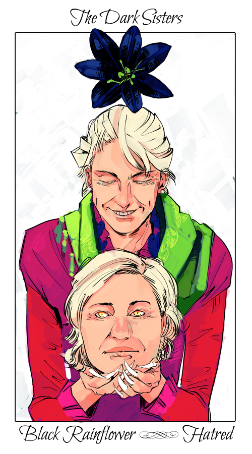 Mrs. Dark was tall and thin, her hair almost colorless. She, like her sister, wore bright clothes and gloves, used to hide their clawed hands—their demon marks. According to Will, she was not much to look at, and even her true demon form was an improvement.