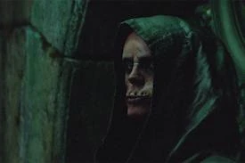 The official attire of the Silent Brothers is a parchment-colored, hooded robe that is belted at the waist. Novice Silent Brothers usually wear plain robes, while those who have advanced to full Brotherhood have intricate runic designs and decorative Marks, in blood-red ink, along the cuffs and hems of their regalia.[5]