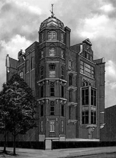 Whitby Mansions is a large building made of pink stone which rises in turrets and spires—Cordelia Carstairs once remarked that these design elements makes it resemble a wedding cake. There are black double doors with a brass bell nearby. The lobby of the ground floor is dimly lit with furniture made up of mahogany and dark wood—much like what is found in hotels.